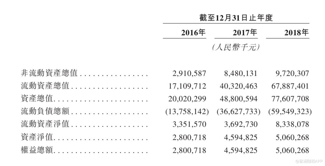 于2016年、2017年及2018年,流动资产净值分别为人民币33.5亿元、人民币36.9亿元及人民币83.4亿元。流动资产净值于往绩记录期有所增长,主要是由于物业开发业务持续扩张导致过去三年开发中物业增加,部份被合约负债增加(与业务扩张一致)所抵消。