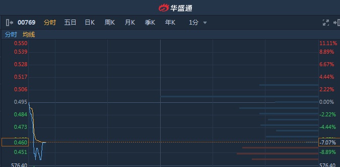Ltd减持4000万股,涉资2280万港元。截至9时48分,跌7.07%,报价0.46港元,成交额1196万。