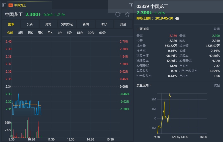 智通财经APP获悉,摩根大通发表研究报告,下调龙工(03339)2019及2020年每股盈利预测,以反映轮式装载机最新销售趋势及公司最新业绩表现。该行预期公司2019年每股盈利按年持平,2020年按年跌7%,较市场预期低19%-28%。