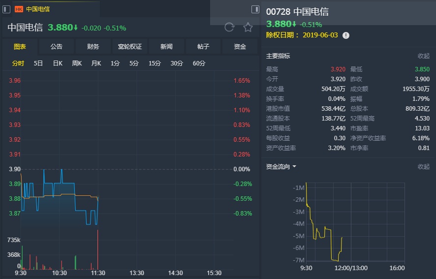 智通财经APP获悉,高盛发表报告,维持对中电信(00728)“买入”投资评级及目标价5.1港元。预计公司可持续提升移动电讯业务上客表现,其收入及EBITDA增长可领先行业。
