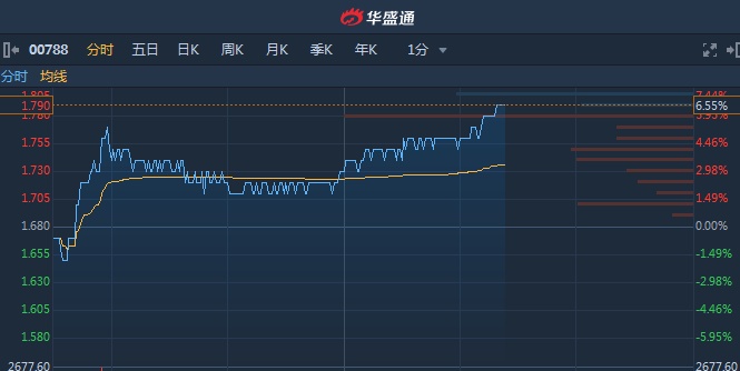 智通财经APP获悉,5G概念随A股集体反弹,中国铁塔(00788)涨幅持续扩大,领涨国指。截至14时22分,涨6.55%,报价1.79港元,成交额10.8亿。