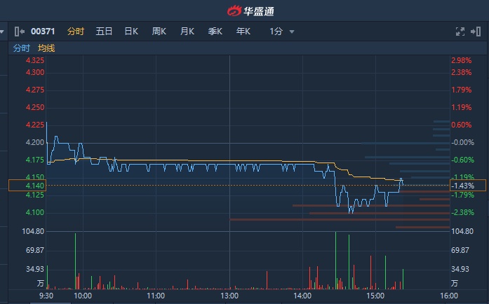 港股异动︱盘中现一宗大手成交涉资2237.98万港元 北控水务集团(00371)现跌1.43%