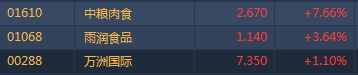 港股异动︱猪肉概念随A股再度活跃 中粮肉食(01610)大涨近8%