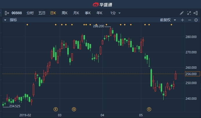 智通财经APP获悉,港交所(00388)早盘跳空高开后震荡走高,放量显著,截至14时3分,涨2.49%,报255.4港元,成交额达12.87亿港元。