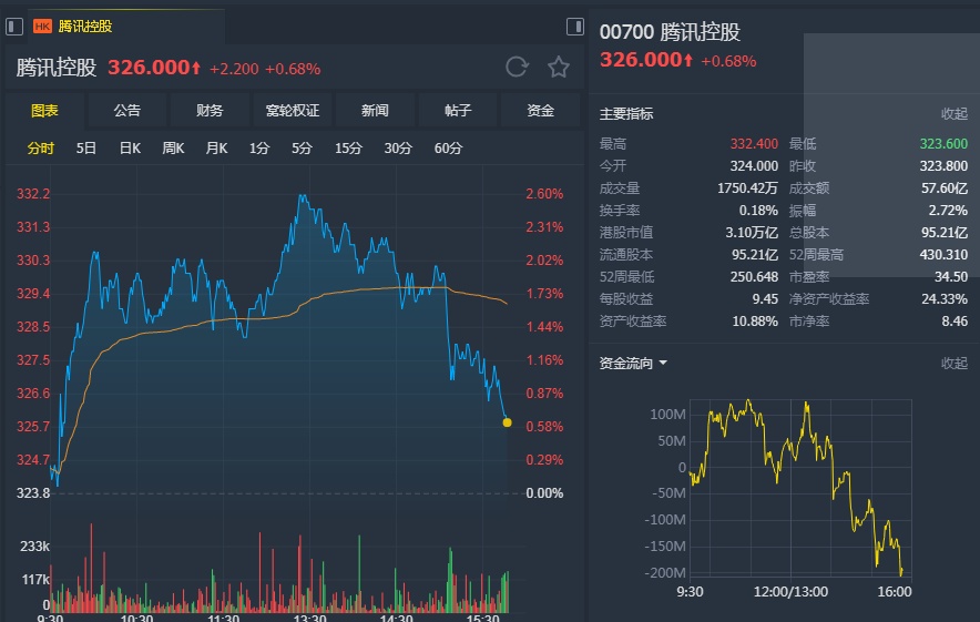 智通财经APP获悉,腾讯早前举行峰会,瑞银发表报告称,看好腾讯(00700)转至工业因特网,并相信有助抵抗传统业务增长放慢的问题。该行维持腾讯每股盈利预期,今年可达9.78元人民币,同比升20.7%,明年可达12.83元人民币,同比再升31.2%,维持其“买入”评级,目标价450港元(较前收市价323.8港元有39%潜在升幅),折合31倍预测明年市盈率。