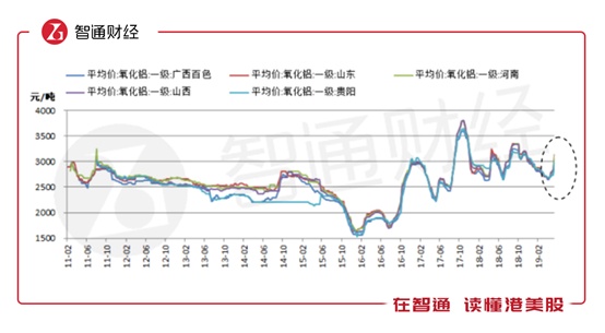 此前2018年业绩,最大拖累因素就是四季度的氧化铝和电解铝价格下滑。智通财经APP了解到,2018年四季度国内氧化铝均价环比跌0.6%,电解铝均价环比跌3.9%,中国铝业四季度毛利率从前三季的7.67%、7.57%和9.44%,大幅下滑至5.24%。而且全年新增的3.53亿存货跌价准备,也主要是在四季度计提的2.74亿元人民币(单位下同)电解铝跌价准备,以及0.54亿元氧化铝跌价准备。