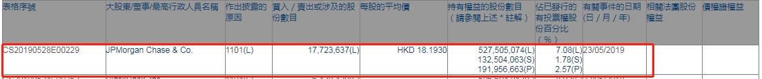 智通财经APP获悉,根据联交所资料显示,摩根大通于5月23日增持中国人寿(02628)1772万股,每股作价18.19港元,总值约3.22亿港元,最新持股数目约5.27亿股,最新持股比例为7.08%。
