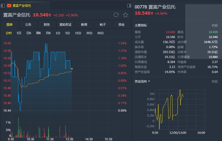 智通财经APP获悉,时富金融发表研报称,建议“买入”置富产业信托(00778),目标价11港元。该行表示,由于收入100%来自香港,租金收入稳定。