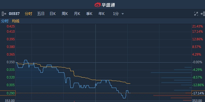 GP(08537)五连跌,累计跌幅达70%,今日盘中低见0.28港元,创上市新低。截至14时02分,跌17.14%,报价0.29港元,成交额662.8万。