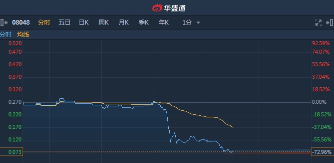 港股异动︱创业板细价股御德国际(08048) 午后股价快速下跌73%