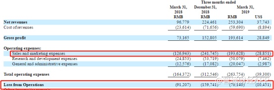 从数据中不难看出,在公司整体营收大幅增长的情况下,其今年Q1的经营亏损是同比收窄的,而其中主要是因为流利说营销费用仅从2018年同期的1.27亿元增至1.94亿元。营销费用增幅远低于整体营收增幅。