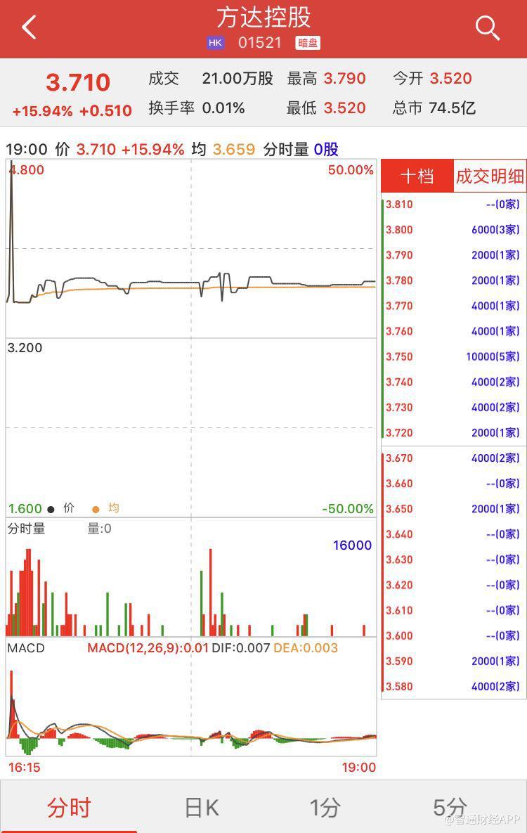 智通财经APP获悉,方达控股(01521)将于5月30日挂牌,上市前夕,其暗盘收报3.70港元,较招股价3.20港元,涨15.625%。每手2000股,不计手续费,每手赚1000港元。