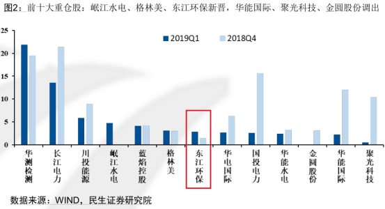 民生证券统计显示,东江环保A股新晋2019一季度公募基金环保公用行业前十大重仓股。按持股市值排名,东江环保排名第3,市值占比则排名第5。