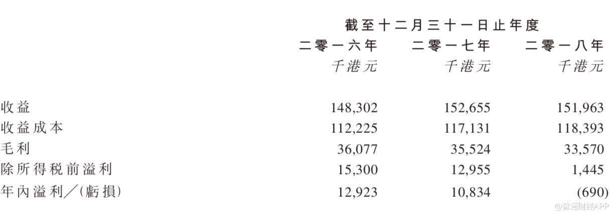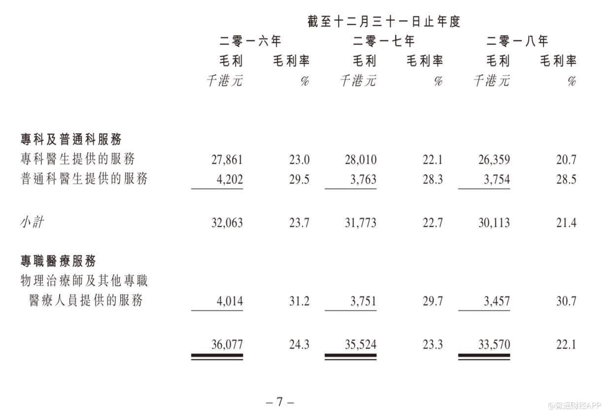 根据招股书显示,收益由截至2016年12月31日止年度的148.3百万港元增加4.4百万港元或3.0%至截至2017年12月31日止年度的152.7百万港元,并由截至2017年12月31日止年度的152.7百万港元减少0.7百万港元或0.5%至截至2018年12月31日止年度的152.0百万港元,主要由于物理治疗师及其他专职医疗人员提供服务所得收益减少,惟部分被专科医生提供服务所得收益的增加抵销。
