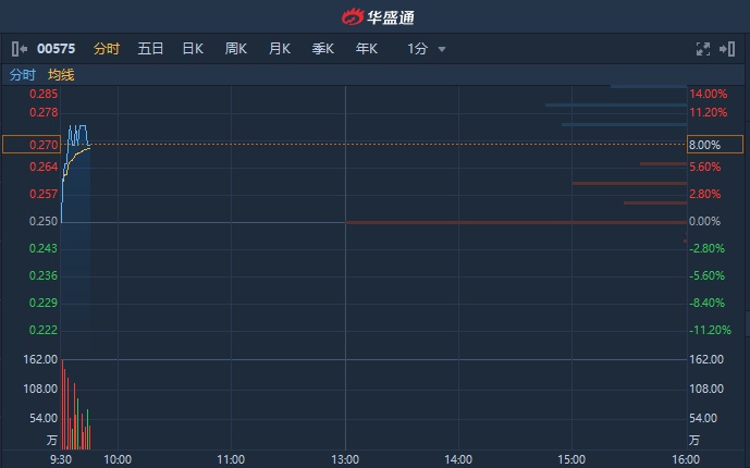 智通财经APP获悉,励晶太平洋(00575)早盘平开后直线拉升,截至9时44分,涨8%,报0.27港元,成交额达284.2万港元。