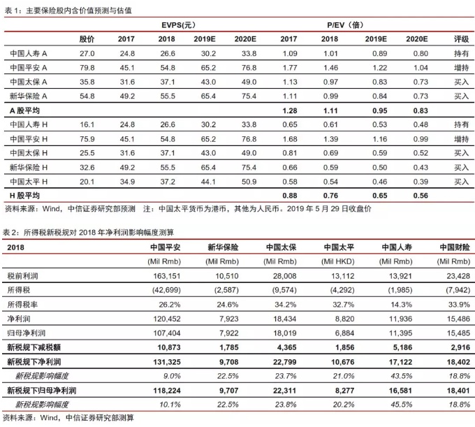 对于寿险公司,由于长久期属性,在做保单有效业务价值和新业务价值评估时已经做了长期合理的税负假设,并不受该税收政策调整影响。新规带来盈利能力的改善,将体现为未来每年调整后净资产的提高(比抵税新规前),进而对内含价值有轻微正面影响。因此,在内含价值估值体系下,预计该因素对股价是一次性利好因素,并非持续性利好因素。