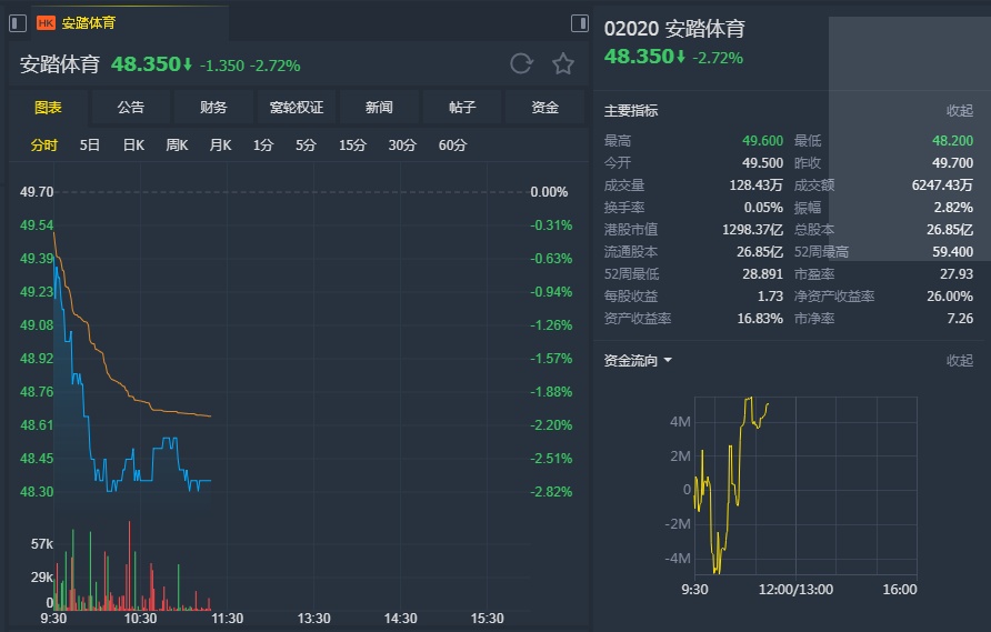 不过,该行认为公司近期收购的冬季及球类运动品牌Amer Sports仍面对不明朗因素。该行又表示,安踏2019年预测市盈率20.7倍,高过自2015年以来历史平均值,此外,股价年初至今升32%,预计已反映销售增长强劲的因素,维持“中性”评级,目标价由45.18港元升至52.22港元。