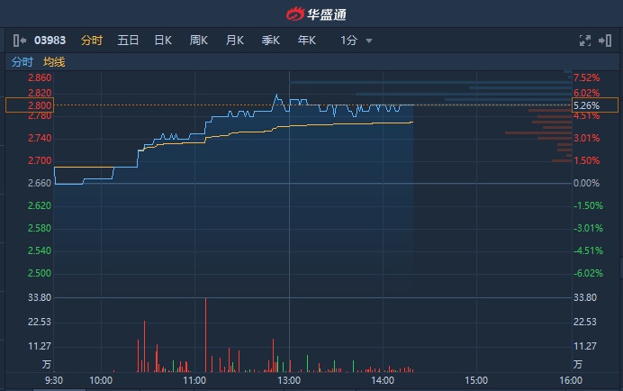 智通财经APP获悉,中海石油化学(03983)今日逆市扬升,突破多条均线,截至14时18分,涨5.26%,报2.8港元,成交额达843.7万港元。