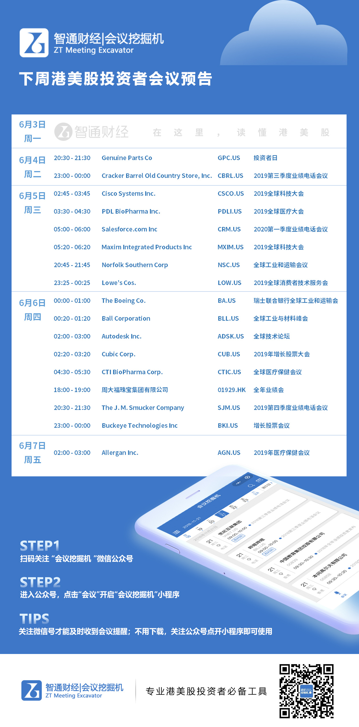 以下是智通财经“会议挖掘机”为您整理的下周(6月3日-6月7日)港美股上市公司会议日历。