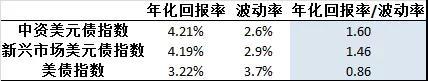 在美元债券市场中,无论是与大口径的债券指数,还是与新兴市场美元债相比,中资美元债的历史收益风险比都更好。