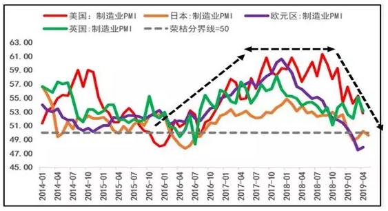 从之前的宏观研究来看,宏观面早在1月份就已经在转差,如图十一显示,PMI采购经理人指数一直在下滑,全球经济的下行压力非常大。经济的下行肯定会影响到原油的需求,但是很难衡量影响的程度及爆发点。