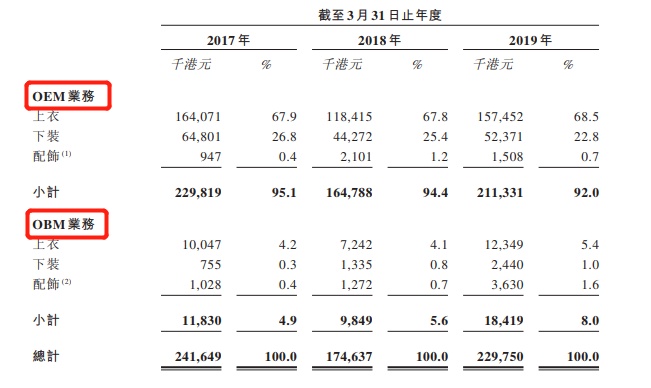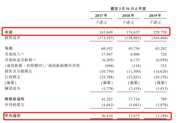 截至2017年、2018年及2019年3月31日止年度,该公司总收益分别为2.42亿港元、1.75亿港元及2.30亿港元。期间增长主要由于OEM产品于截至2019年3月31日止年度的销售数量与平均售价增加。截至2017年及2018年年3月31日止年度,港股分别取得年内溢利3641万港元及1267.5万港元。截至2017年、2018年及2019年3月31日止年度,该公司OEM业务的收益分别为2.3亿港元、1.65亿港元及2.1亿港元,分别占总收益的95.1%、94.4%及92.0%。