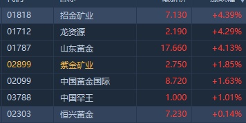 智通财经APP获悉,早盘本已反弹的恒指午后再度走低,一度失守两万七关口,5月以来恒指累计跌幅达9%,资金避险情绪浓厚,黄金股逆市崛起,截至发稿,招金矿业(01818)涨4.39%,山东黄金(01787)涨4.13%,紫金矿业(02899)涨1.85%。