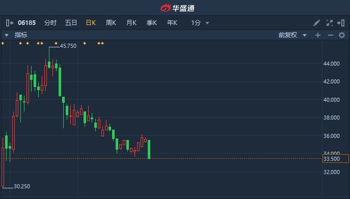 港股异动︱康希诺生物-B(06185)挫逾6% 创月内最大单日跌幅