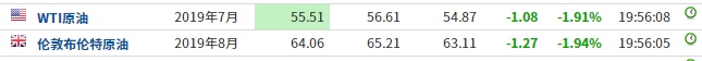 WTI原油跌1.91%,报55.51美元/桶。布伦特原油跌1.94%,报64.06美元/桶。