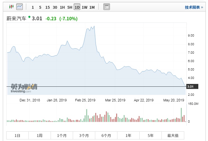 智通财经APP获悉,蔚来汽车(NIO.US)今日美股开盘继续大跌,截止到发稿,下跌7.1%,报3.01美元。该公司连续三天下跌超过7%,三天累计下跌25%。