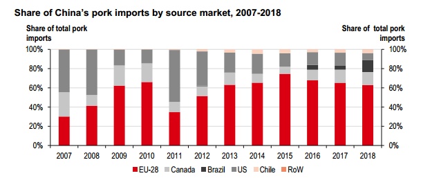 虽然我国的产量全球最大,但由于饮食结构的原因,中国依然是净进口国。近几年来,整体的猪肉进口还是在不断的增加。2018年的进口在120万吨左右。