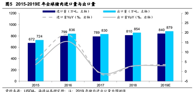 根据海通证券的测算,2019年我国猪肉的供需缺口在651万吨,2020年会进一步加大,增加至879万吨。