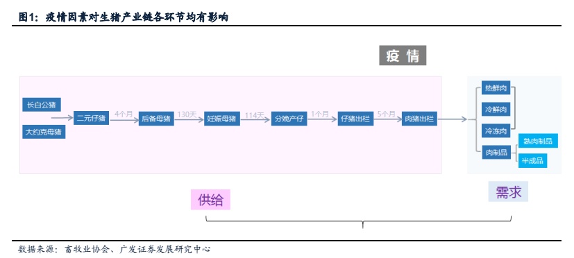 即便是能繁母猪的量开始恢复,也需要时间。如下图所示,供给端一整套流程走下来,大约需要16个月的时间。