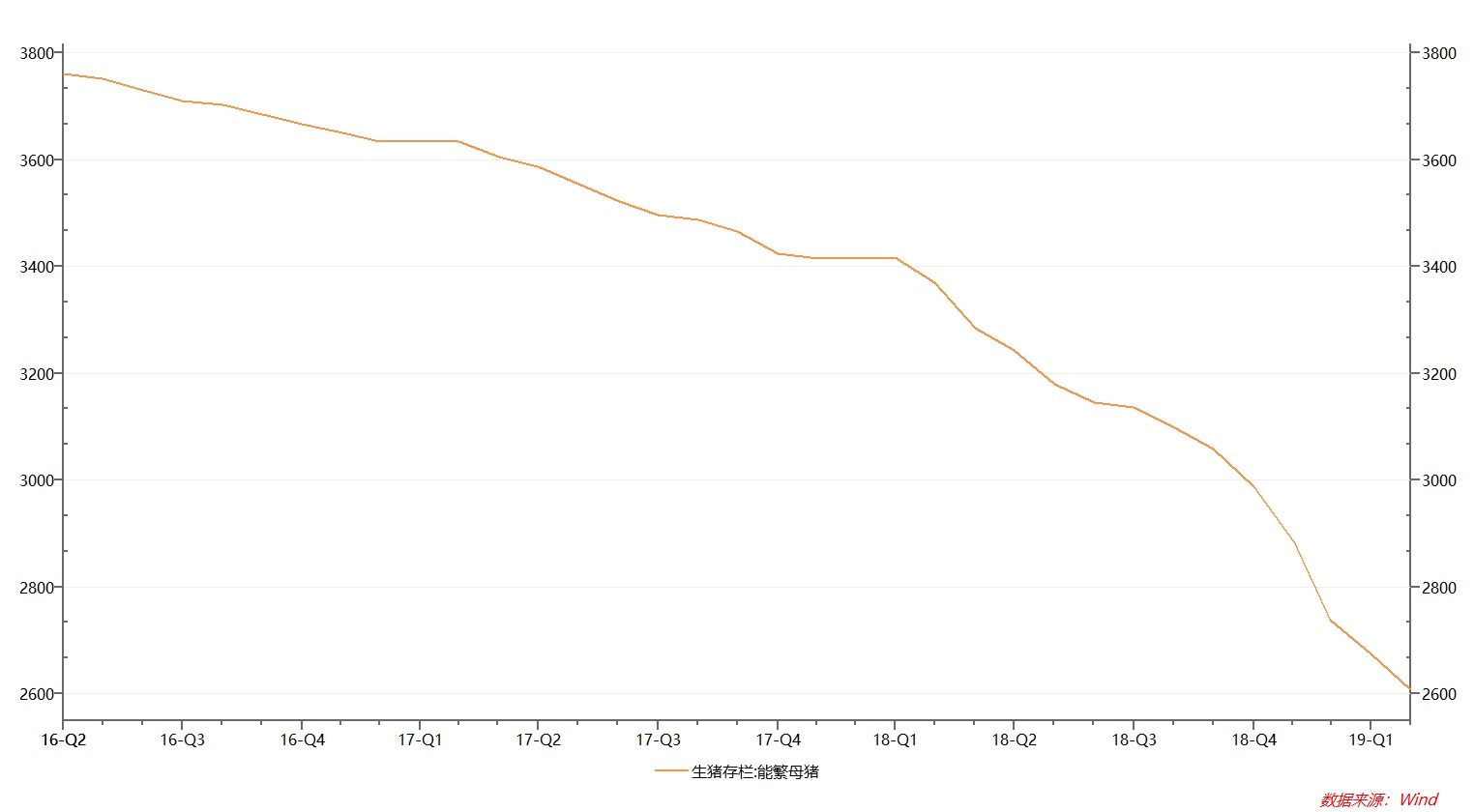 实际上补贴加强了猪肉的存栏量的去化,而且因为猪瘟的反复,很多养猪户退出养猪市场。主要反应在能繁母猪的量上。如下图所示。