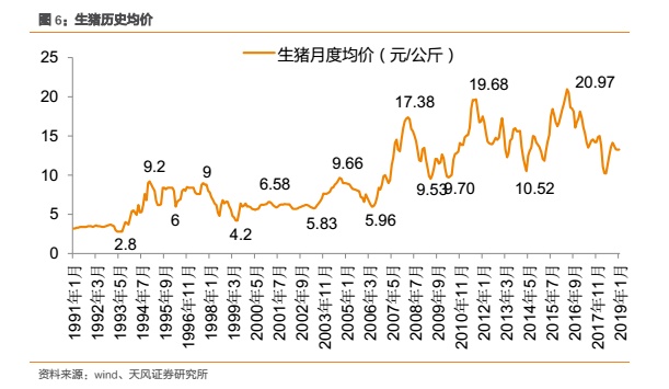 如果看生猪的历史均价,就很清晰了。整体猪肉价格向上的趋势非常明确。