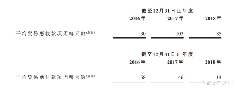 贸易应收款项激增的背后,是应收款项周转天数仍远长于应付款项周转天数。2018年时,华软集团的平均贸易应收款项周转天数为85天,而应付款项的周转天数仅有38天,应收与应付之间的时间差,导致了大量的贸易应收款项。