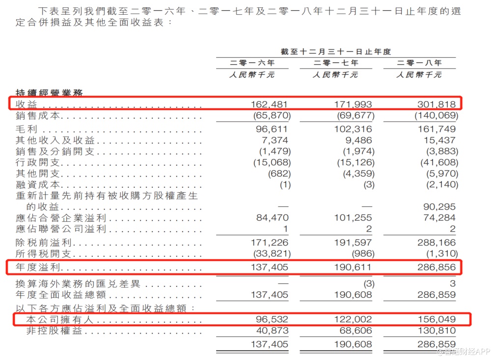 2016至2018,嘉宏分别实现收入1.62亿元(人民币,下同)、1.72亿元和3.02亿元,净利润1.37亿元、1.91亿元和2.87亿元。