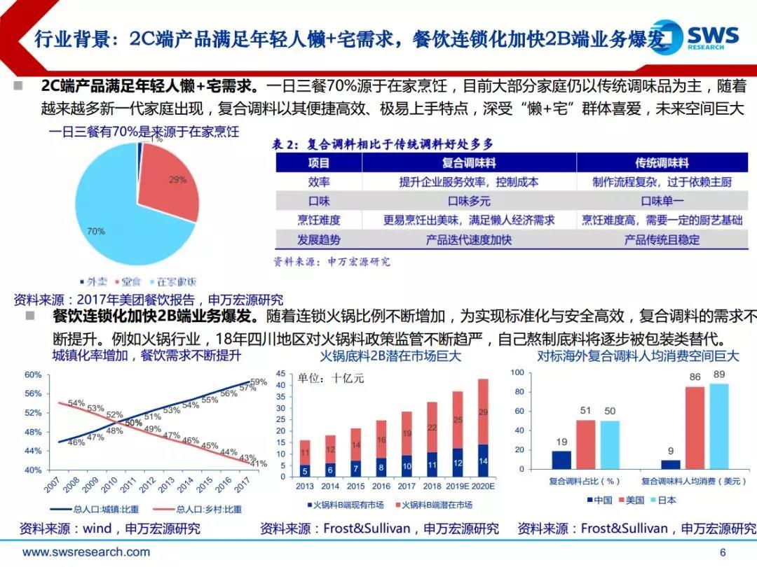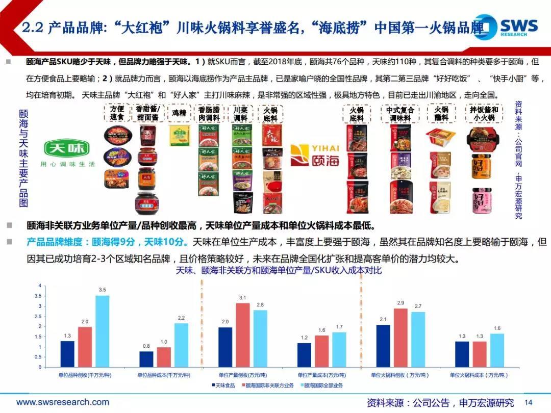天味聚焦大单品,颐海合伙人制再出发。1)潜在产能:天味产能利用率不高,扩充产能系平滑淡旺季和加强定制餐饮;颐海旺季采用外协生产,新工厂在19年后产能爆发增长;2)未来方向:天味发力品牌加强定制餐调渠道,颐海扩充渠道发力小火锅;3)估值比较:天味有A股次新股因素,颐海估值与海底捞相关。