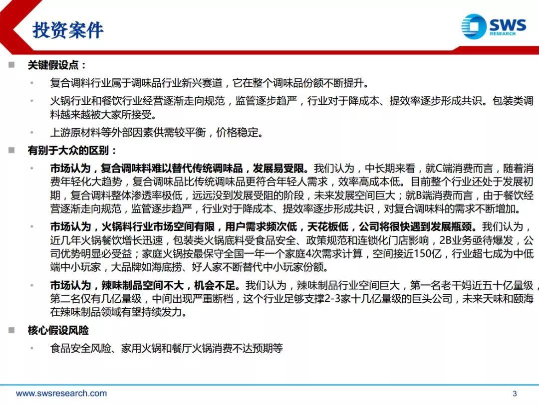 相关标的:颐海国际、天味食品、海天味业、海底捞(06862)、呷哺呷哺(00520)、安井食品等