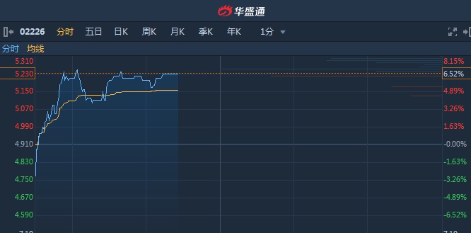 智通财经APP获悉,老恒和酿造(02226)逆市上涨,盘中高见5.29港元,创三年半新高。截至11时22分,涨6.52%,报价5.23港元,成交525.1万。