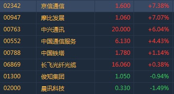 智通财经APP获悉,工业和信息化部将于近期发放5G商用牌照,午后港股5G概念股集体走高。截至13时33分,京信通信(02342)涨7.38%,摩比发展(00947)涨7.07%,中兴通讯(00763)涨6.04%,中国通信服务(00552)涨4.43%。