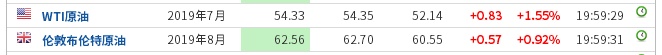 油价方面,WTI原油涨1.55%,报54.33美元/桶。布伦特原油涨0.92%,报62.56美元/桶。