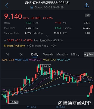 截至今日收盘,深圳高速公路(00548)涨0.77%,报9.14港元。