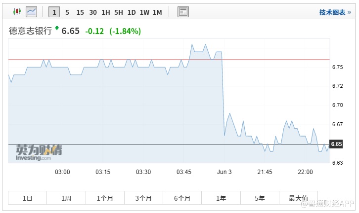 智通财经APP获悉,周一美股开盘, 德银(DB.US)股价向下一度触及历史新低6.637美元,截至发稿,德银跌1.84%,报6.65美元。据了解,因市场呼吁德意志银行增加资本缓冲,以及受累于欧洲经济陷入困境,欧元区利率可能下调,德意志银行的压力不断加大。