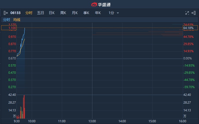 智通财经APP获悉,维太移动(06133)早盘现强力拉升,显著走强,截至9时45分,涨64.18%,报1.1港元,成交额达247.8万港元。