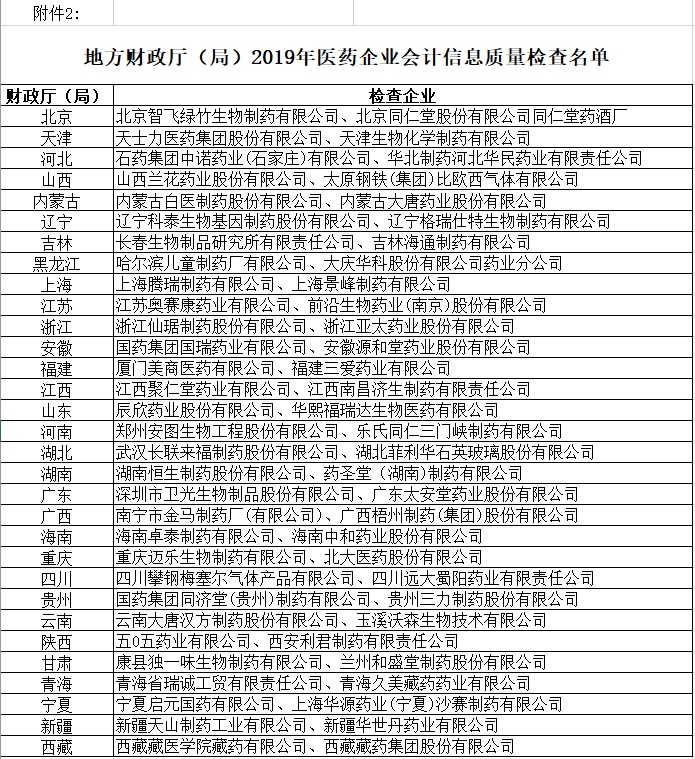 为深入贯彻党中央、国务院决策部署,促进更加公平、更可持续的医疗保障体系建设,依据《中华人民共和国会计法》等法律法规和2019年度财政督查检查计划,财政部决定组织部分监管局和各省、自治区、直辖市财政厅(局)于2019年6月至7月开展医药行业会计信息质量检查工作。