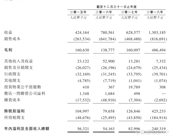截至2015年、2016年、2017年及2018年12月31日止年度,万创国际分别确认收益约人民币4.24亿元、人民币7.80亿元、人民币6.28亿元及人民币13.03亿元。于往绩记录期,销售物业所得的收益主要受其已出售及已交付开发物业的建筑面积及彼等各自的平均售价影响。平均售价通常受诸多因素影响,例如楼宇类型、地点、市场状况及需要、以及开发成本。
