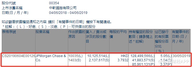 智通财经APP获悉,根据联交所资料显示,摩根大通于5月30日增持中国软件国际(00354)1012万股,每股作价3.79港元,总值约3835万港元,最新持股数目约1.28亿股,最新持股比例为5.05%。