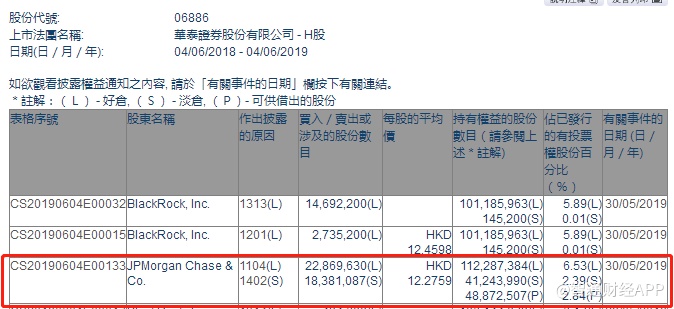 智通财经APP获悉,根据联交所资料显示,摩根大通于5月30日增持华泰证券(06886)2286万股,每股作价12.3港元,总值约2.8亿港元,最新持股数目约1.12亿股,最新持股比例为6.53%。