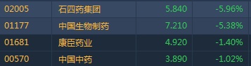智通财经APP获悉,据央视网报道称,财政部将稽查77家药企,多家A股上市企业名列其中。港股医药股早盘全线受挫,截至10时29分,石四药(02005)跌5.96%,报价5.84港元,中生制药(01177)跌5.38%,康臣药业(01681)跌1.4%,中国中药(00570)跌1.02%。